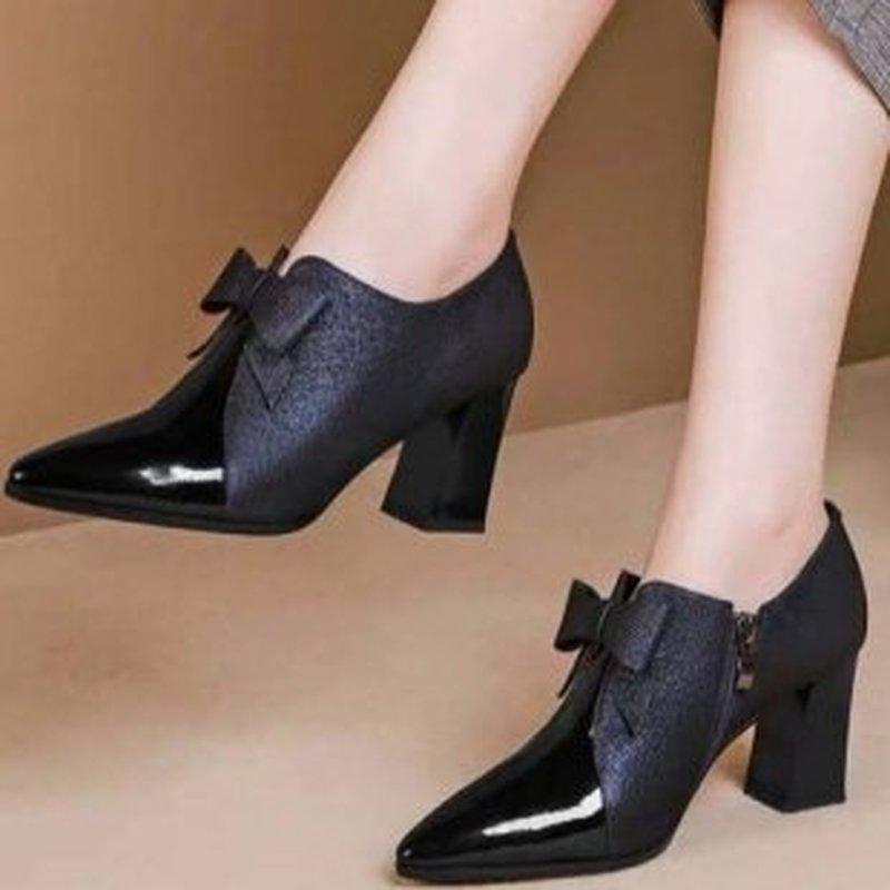 Женские повседневные туфли на высоком каблуке на толстом каблуке, модные туфли на одинарной платформе, осенне-зимние пикантные офисные рабочие туфли с острым бантом, женская обувь