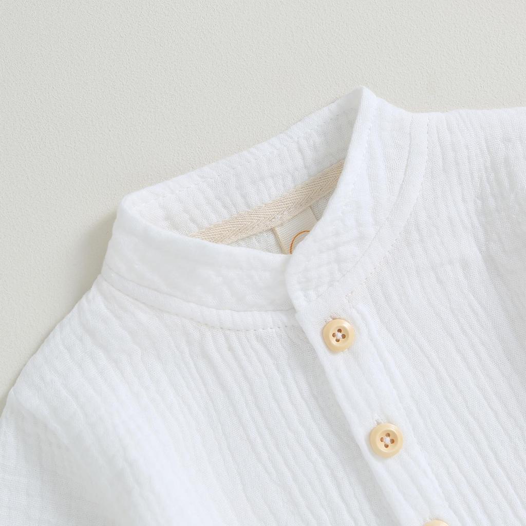 Детская одежда из хлопка и льна для мальчиков, детская одежда для мальчиков, осенние однотонные рубашки с длинными рукавами на пуговицах, топы и длинные брюки с эластичной резинкой на талии, комплект одежды из 2 предметов