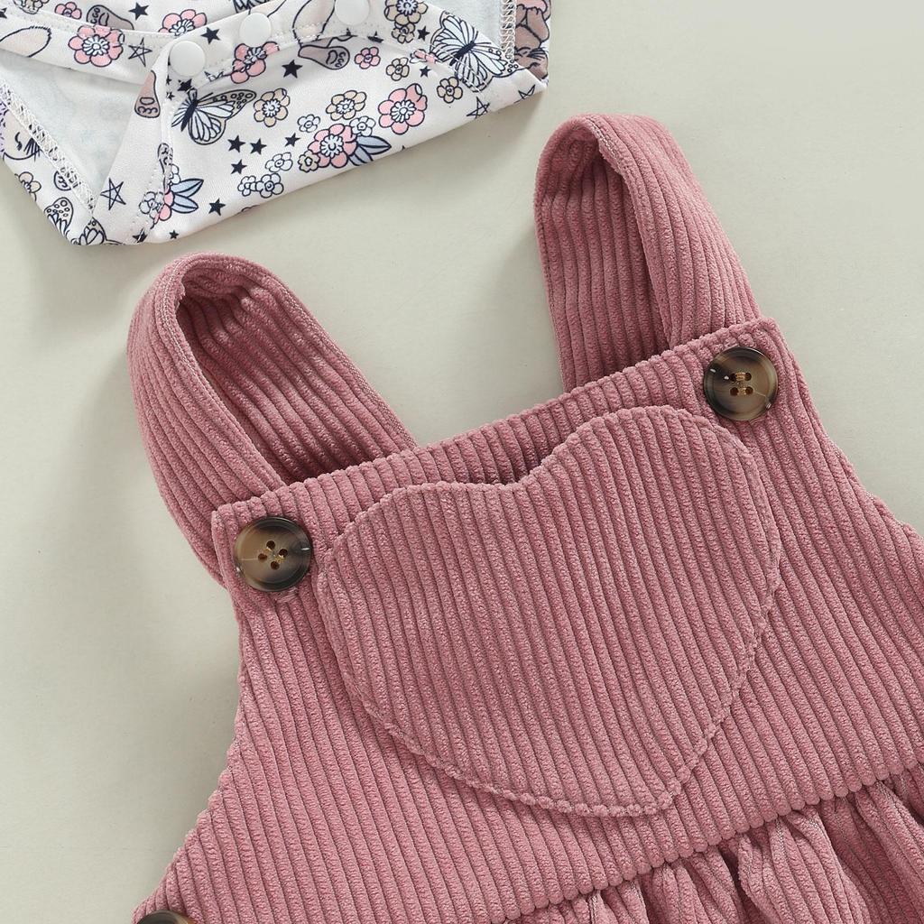 Комплект платьев для маленьких девочек, комбинезон с длинными рукавами и цветочным принтом кролика 3 мес 6 9 9 12 мес 12 мес + платье на подтяжках в стиле пэчворк с сердечками