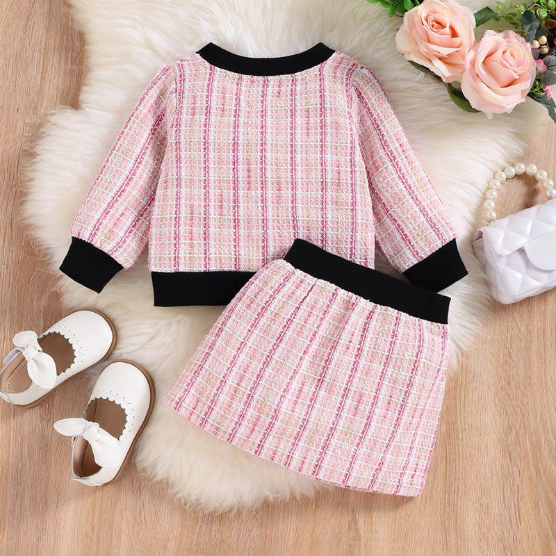 Одежда для маленьких девочек, осеннее платье, повседневный клетчатый кардиган, топ + клетчатая юбка, комплекты для девочек, костюм для новорожденных