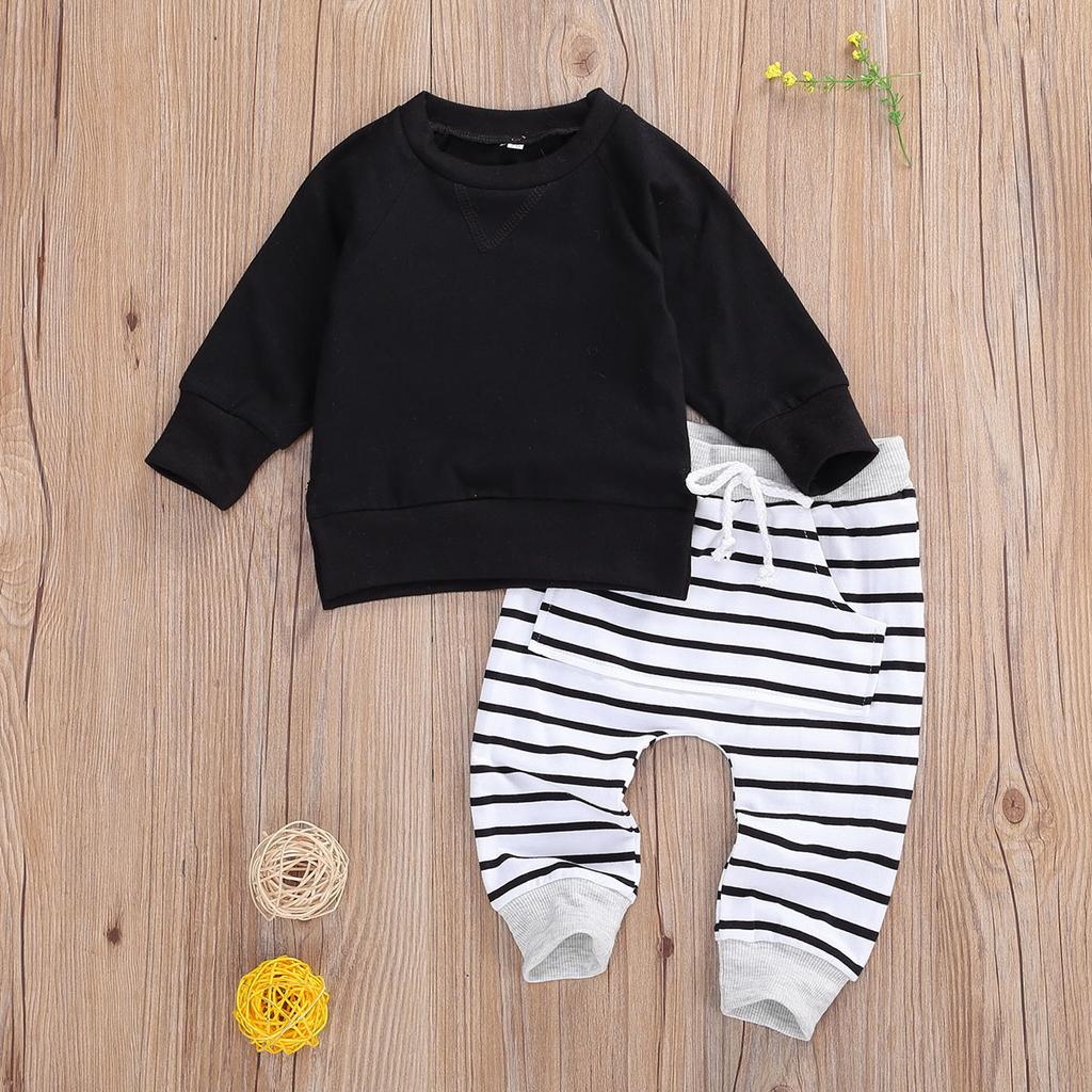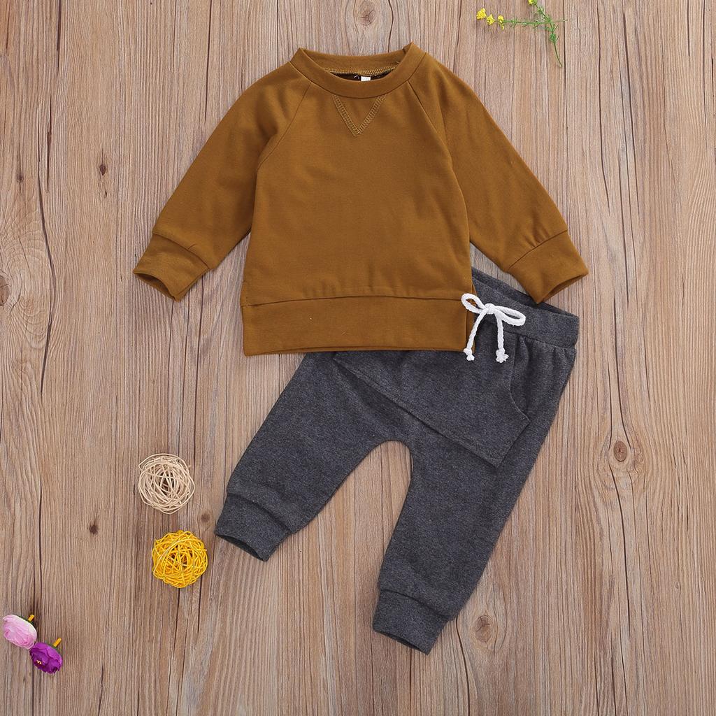 Осенне-зимние наряды для новорожденных мальчиков и девочек, толстовка, длинные штаны, комплект из 2 предметов, подходят для детей от 0 до 24 месяцев