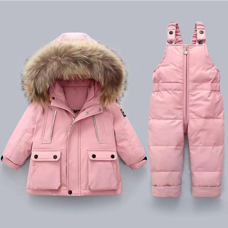 Детский пуховик для мальчиков и девочек, новинка 2022 года, детский костюм для малышей 1-5 лет, детская зимняя одежда из двух предметов в иностранном стиле