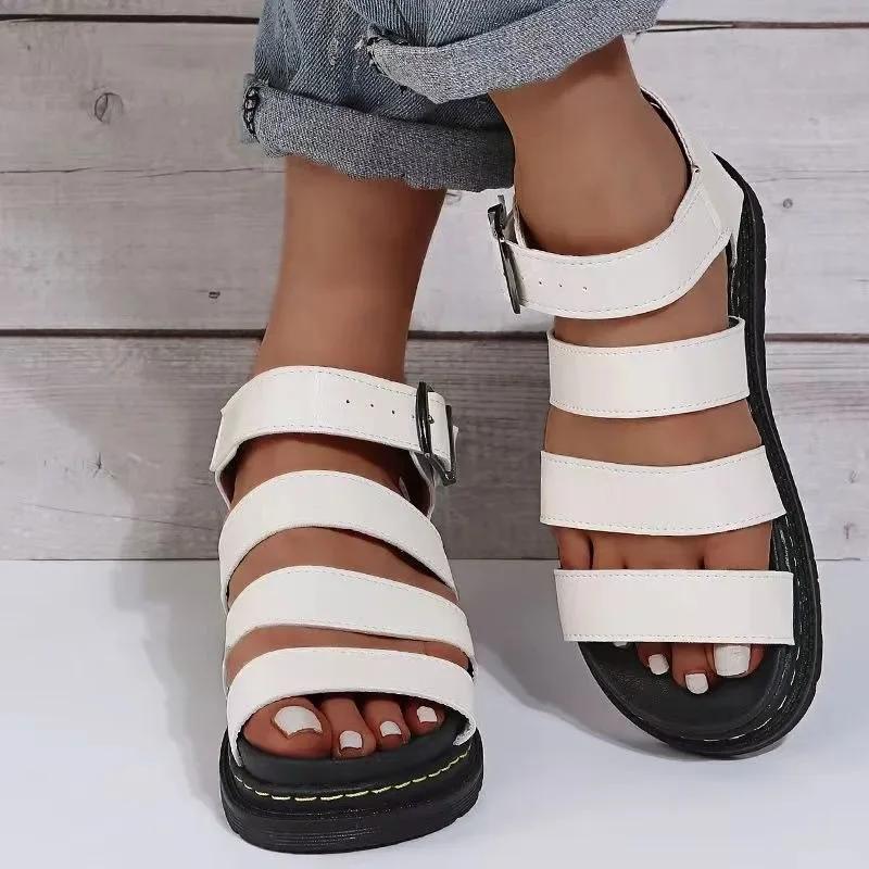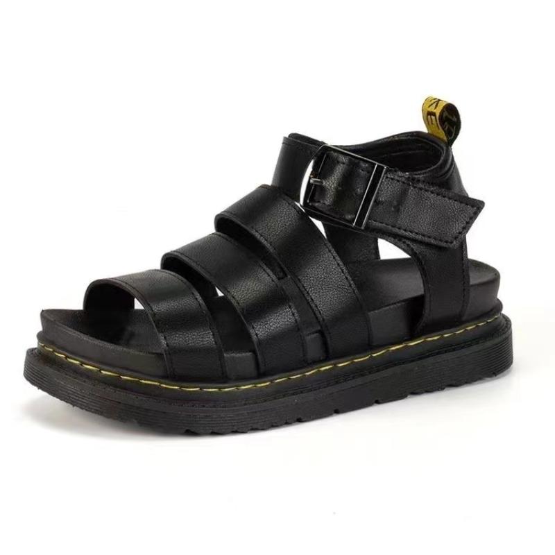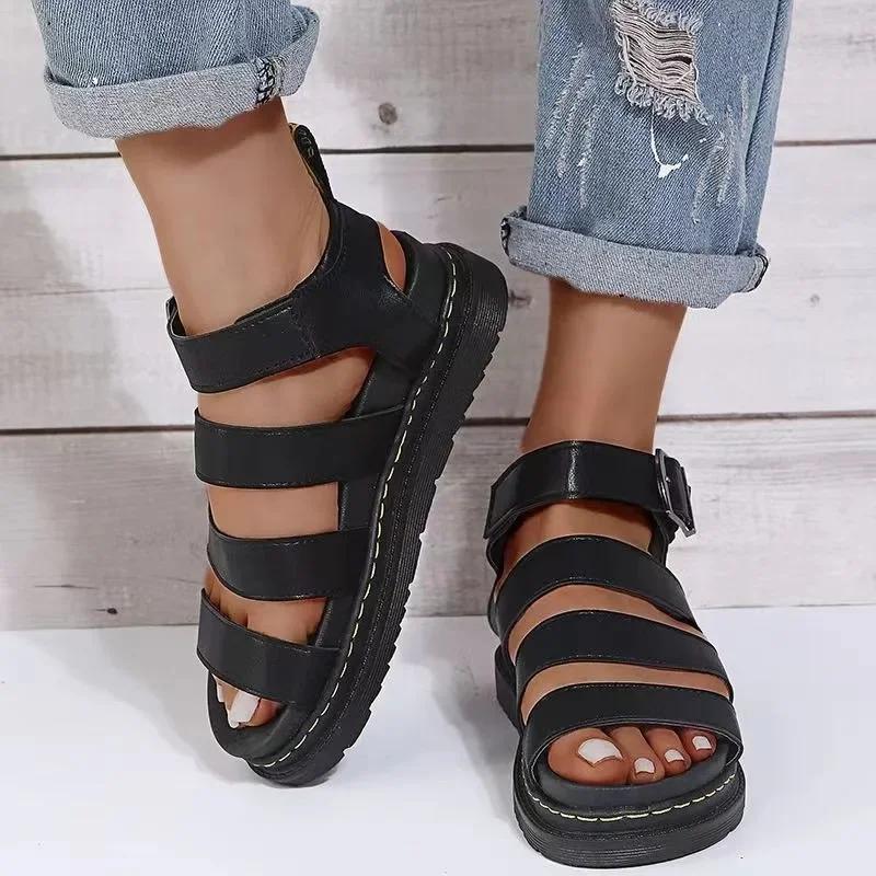 Летние классические кожаные сандалии, женские пляжные туфли с римскими пряжками и открытым носком, сандалии, кожаные сандалии на толстой подошве с открытым носком, с открытым носком