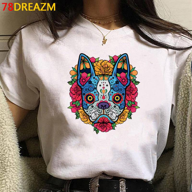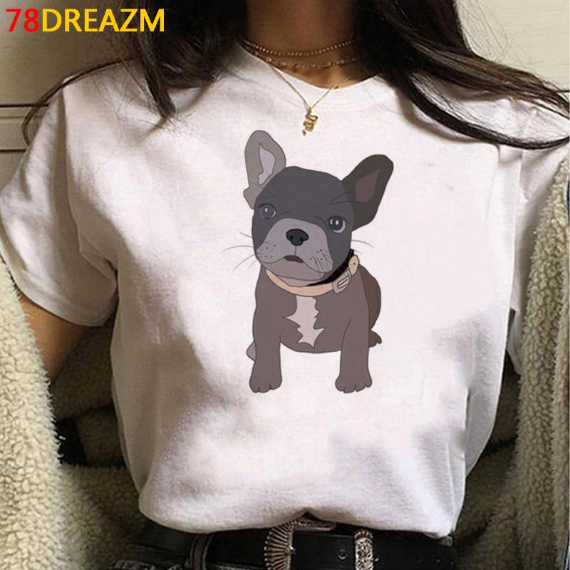 Футболки с французским бульдогом и бультерьером, женские футболки с женским принтом, японская кавайная белая футболка в стиле гранж, футболки, женские футболки