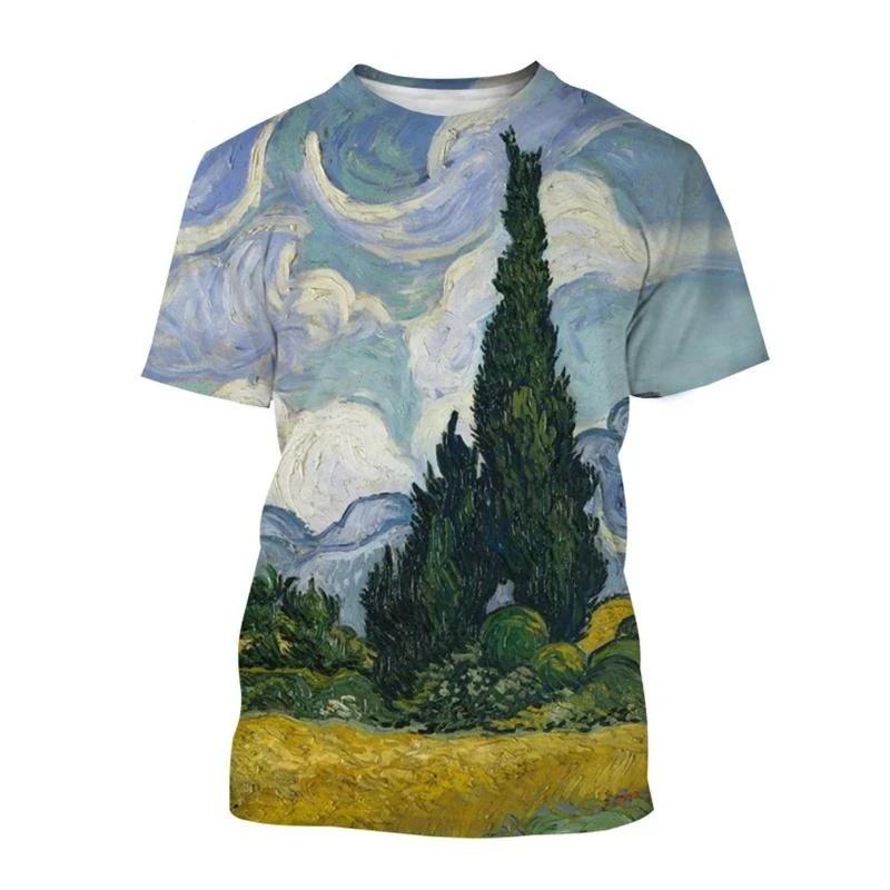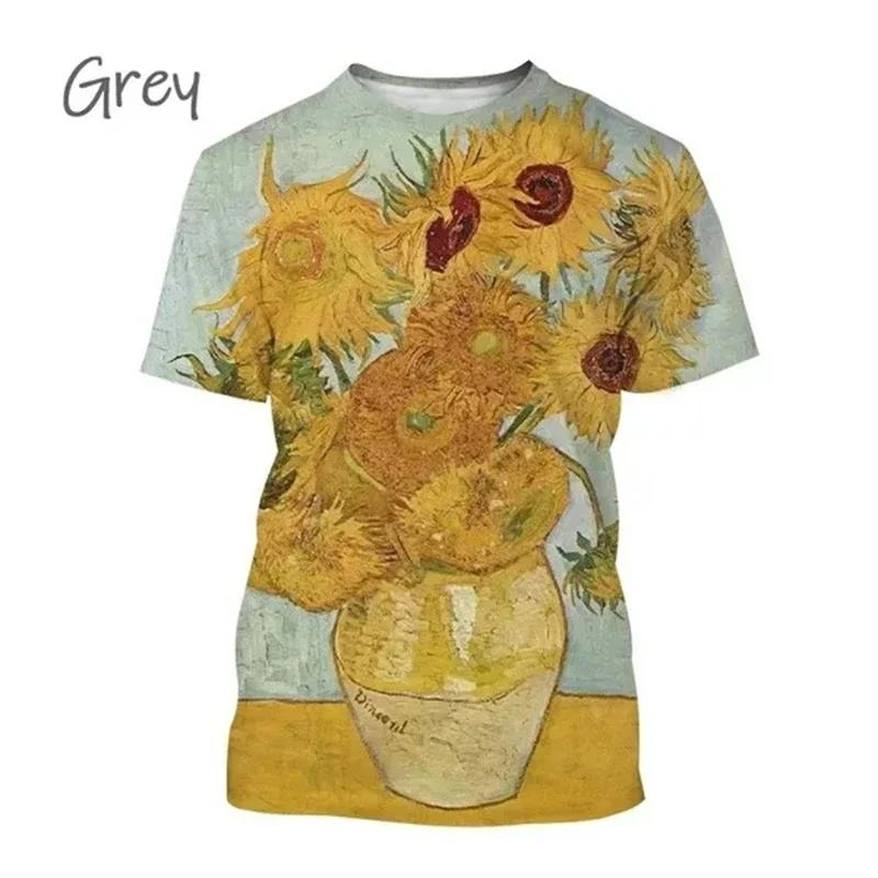 Футболки с подсолнухами, уличная одежда с 3D принтом Ван Гога, мужская и женская модная футболка большого размера с короткими рукавами, летние детские топы, одежда
