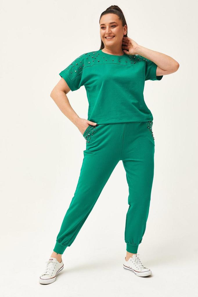 Женский модный спортивный костюм большого размера, летний зеленый спортивный костюм большого размера с камнями и бисером, с коротким рукавом | с круглым вырезом. | Верх спортивного костюма на молнии. | Ребристые рукава и талия. | Каменный принт и детали из бисера. | с короткими рукавами. | Нижний спортивный костюм с эластичными штанинами. | Низ спортивного костюма имеет эластичную талию.. | Низ спортивного костюма с карманом. | При длительном использовании следует мыть вручную.. | Сушить его в сушилке категорически нельзя.. | Состав ткани 95% Вискоза 5% Лайкра.. | Выпускается как L-XL-2Xl и 3XL.. | Изделие представляет собой трикотажную ткань.. Размеры могут отличаться из-за гибкости ткани.. | Измерения верхней части тела. | Размеры L: Обхват груди 118 см, Обхват талии юбки 112 см, Длина рукава 25 см, Длина изделия 65 см.. | Xl Размеры тела: Обхват груди 120 см, Обхват талии юбки 116 см, Длина рукава 25 см, Длина изделия 65 см.. | 2Xl измерения тела: Обхват груди 122 см, Обхват талии юбки 120 см, Длина рукава 25 см, Длина изделия 66 см.. | Размеры тела 3XL: Обхват груди 126 см, Обхват талии юбки 122 см, Длина рукава 25 см, Длина изделия 66 см.. | Измерения нижней части тела. | Размеры L: Талия 80 см, бедра 110 см, длина ног 100 см.. | Xl Размеры тела: Талия 82 см, бедра 112 см, длина ног 100 см.. | 2Xl измерения тела: Талия 86 см, бедра 114 см, длина ног 100 см.. | Размеры тела 3XL: Талия 88 см, бедра 120 см, длина ног 100 см.. || Плесень:ПлюсСайз | Материал:Хлопок | Длина ног:Длинный | Тип ноги:Эластичная нога | Тип закрытия: на молнии | цвет:Зеленый | Тип рукава: Короткий рукав | Тип воротника:Круглый вырез | тип ткани:Трикотаж | Среда:Повседневный | Материальный компонент:95% вискоза, 5% лайкра | Док|Размер: S, грудь: 84-88 см, талия: 66-70см, Бедра: 92-96см | Тебе: M, грудь: 90-94 см, талия: 72-76 см, бедра: 98-102см | Тебе: L, грудь: 96-100 см, талия: 78-82см, Бедра: 104-108см | Тебе: XL, сундук: 102-106 см, талия: 84-88см, Бедра: 110-114см | Тебе: 2XL, Грудь: 108-112 см, талия: 90-94см, Бедра: 116-120см | Тебе: 3XL, Грудь: 112-116 см, талия: 94-98см, Бедра: 122-126см | Тебе: 4XL, Грудь: 118-122 см, талия: 100-104см, Бедра: 128-132см | Тебе: 5XL, Грудь: 124-128 см, талия: 106-110см, Бедра: 134-138см | Тебе: 6XL, Грудь: 130-134 см, талия: 112-116см, Бедра: 140-144 см | Тебе: 7XL, Грудь: 136-140 см, талия: 118-122см, Бедра: 146-150см | Тебе: 8XL, Грудь: 142-146 см, талия: 124-128см, Бедра: 152-156см | Тебе: 9XL, Грудь: 148-152 см, талия: 130-134см, Бедра: 158-162см | Тебе: 10XL, Грудь: 154-158 см, талия: 136-140см, Бедра: 164-168см | Тебе: 11XL, Грудь: 160-164 см, талия: 142-146см, бедра: 170-174см | Тебе: 12XL, Грудь: 166-170см, талия: 148-152см, Бедра: 176-180см | Тебе: 13XL, Грудь: 172-176см, талия: 154-158см, Бедра: 182-186см | Тебе: 14XL, Грудь: 178-182см, талия: 160-164см, Бедра: 188-192см | Тебе: 15XL, Грудь: 184-188см, талия: 166-170см, Бедра: 194-198см