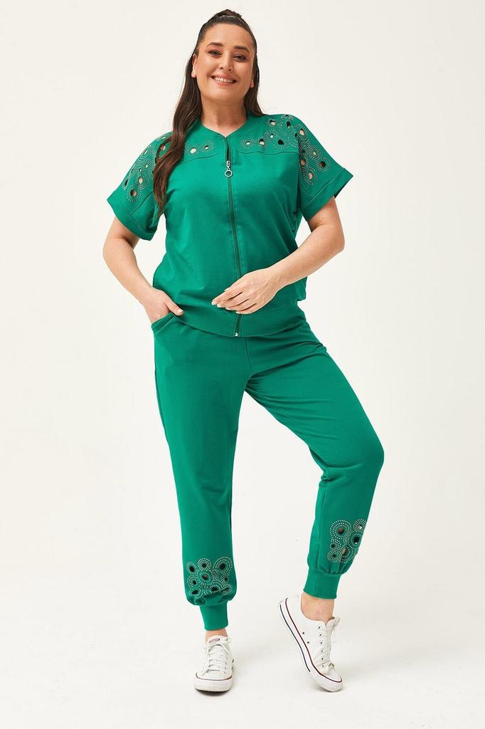 Женский модный комплект спортивного костюма большого размера, большой размер, прозрачный летний комплект с принтом камней и короткими рукавами, зеленый спортивный костюм с круглым вырезом. | Верх спортивного костюма на молнии. | Ребристые рукава и талия. | Печать на камне и лазерная прозрачная резка. | с короткими рукавами. | Нижний спортивный костюм с эластичными штанинами. | Низ спортивного костюма имеет эластичную талию.. | Низ спортивного костюма с карманом. | При длительном использовании следует мыть вручную.. | Сушить его в сушилке категорически нельзя.. | Состав ткани: 95% хлопок, 5% лайкра.. | Выпускается как L-XL-2Xl и 3XL.. | Изделие представляет собой трикотажную ткань.. Размеры могут отличаться из-за гибкости ткани.. | Измерения верхней части тела. | Размеры L: Обхват груди 130 см, обхват талии юбки 114 см, длина рукава 15 см, длина изделия 66 см.. | Xl Размеры тела: Обхват груди 132 см, Обхват талии юбки 116 см, Длина рукава 15 см, Длина изделия 66 см.. | 2Xl измерения тела: Обхват груди 134 см, Обхват талии юбки 118 см, Длина рукава 15 см, Длина изделия 67 см.. | Размеры тела 3XL: Обхват груди 136 см, Обхват талии юбки 120 см, Длина рукава 15 см, Длина изделия 67 см.. | Измерения нижней части тела. | Размеры L: Талия 90 см, бедра 98 см, длина ног 105 см.. | Xl Размеры тела: Талия 92 см, бедра 100 см, длина ног 105 см.. | 2Xl измерения тела: Талия 94 см, бедра 102 см, длина ног 105 см.. | Размеры тела 3XL: Талия 96 см, бедра 104 см, длина ног 105 см.. || Плесень:ПлюсСайз | Материал:Хлопок | Тип ноги:Эластичная нога | цвет:Зеленый | Длина ног:Длинный | Тип закрытия: на молнии | Тип рукава: Короткий рукав | Тип воротника:Круглый вырез | тип ткани:Трикотаж | Среда:Повседневный | Материальный компонент:95% хлопок, 5% лайкра | Ткань|Размер: S, грудь: 84-88 см, талия: 66-70см, Бедра: 92-96см | Тебе: M, грудь: 90-94 см, талия: 72-76 см, бедра: 98-102см | Тебе: L, грудь: 96-100 см, талия: 78-82см, Бедра: 104-108см | Тебе: XL, сундук: 102-106 см, талия: 84-88см, Бедра: 110-114см | Тебе: 2XL, Грудь: 108-112 см, талия: 90-94см, Бедра: 116-120см | Тебе: 3XL, Грудь: 112-116 см, талия: 94-98см, Бедра: 122-126см | Тебе: 4XL, Грудь: 118-122 см, талия: 100-104см, Бедра: 128-132см | Тебе: 5XL, Грудь: 124-128 см, талия: 106-110см, Бедра: 134-138см | Тебе: 6XL, Грудь: 130-134 см, талия: 112-116см, Бедра: 140-144 см | Тебе: 7XL, Грудь: 136-140 см, талия: 118-122см, Бедра: 146-150см | Тебе: 8XL, Грудь: 142-146 см, талия: 124-128см, Бедра: 152-156см | Тебе: 9XL, Грудь: 148-152 см, талия: 130-134см, Бедра: 158-162см | Тебе: 10XL, Грудь: 154-158 см, талия: 136-140см, Бедра: 164-168см | Тебе: 11XL, Грудь: 160-164 см, талия: 142-146см, бедра: 170-174см | Тебе: 12XL, Грудь: 166-170см, талия: 148-152см, Бедра: 176-180см | Тебе: 13XL, Грудь: 172-176см, талия: 154-158см, Бедра: 182-186см | Тебе: 14XL, Грудь: 178-182см, талия: 160-164см, Бедра: 188-192см | Тебе: 15XL, Грудь: 184-188см, талия: 166-170см, Бедра: 194-198см