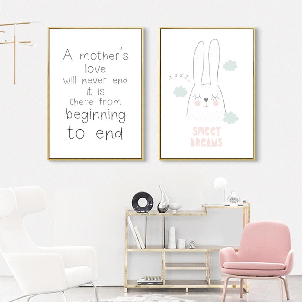 Милые Мультяшные Минималистичные Кролик Медведь Ребенок Линия Настенные Холщовые Постеры Картины Принты Для Гостиной Детской Комнаты Домашний Декор