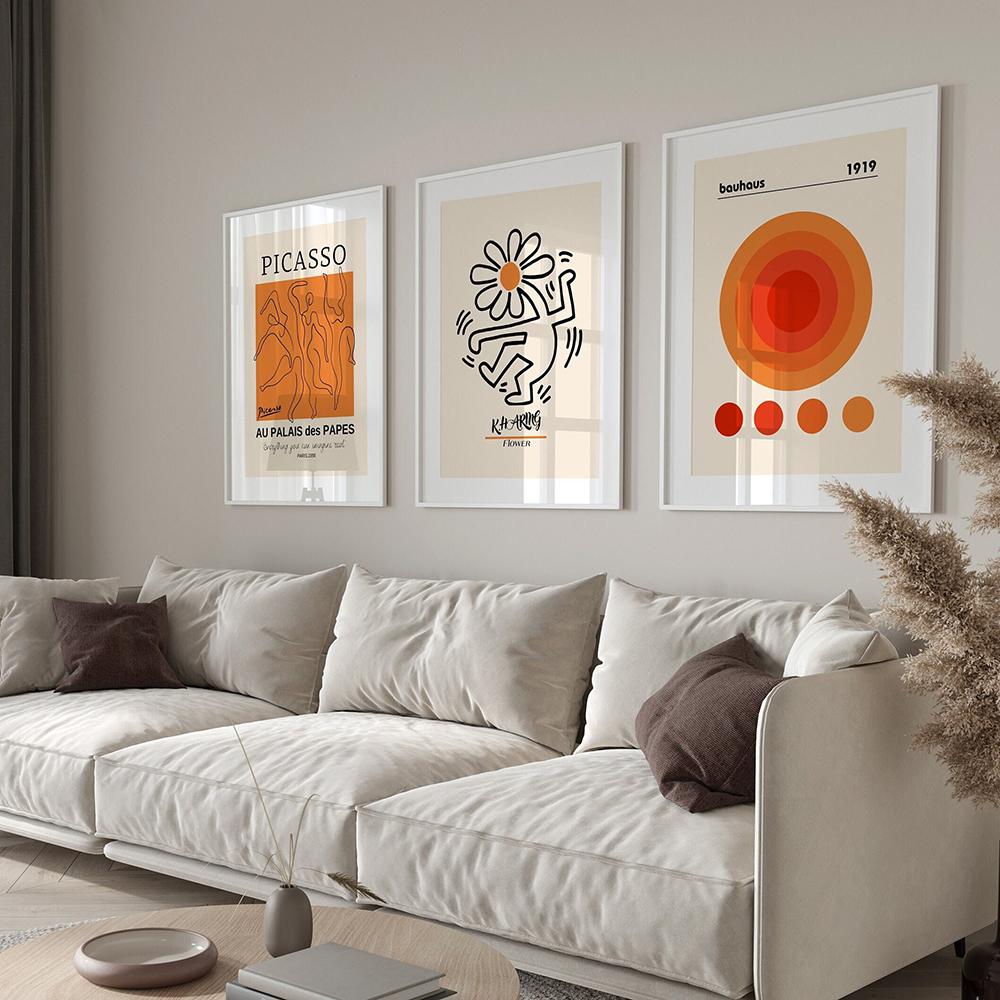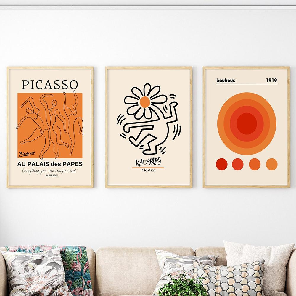 Пикассо Танцовщица Баухаус Круглый Харинг Оранжевый Настенное Искусство Холст Картина Скандинавская эстетика Плакат и принт Декор в гостиную Картина