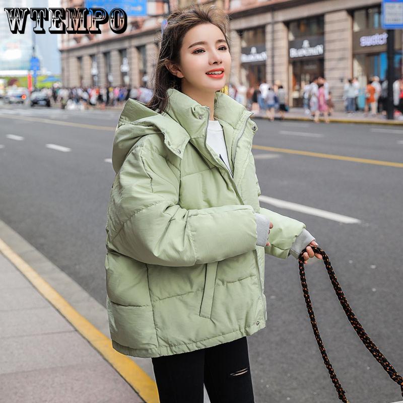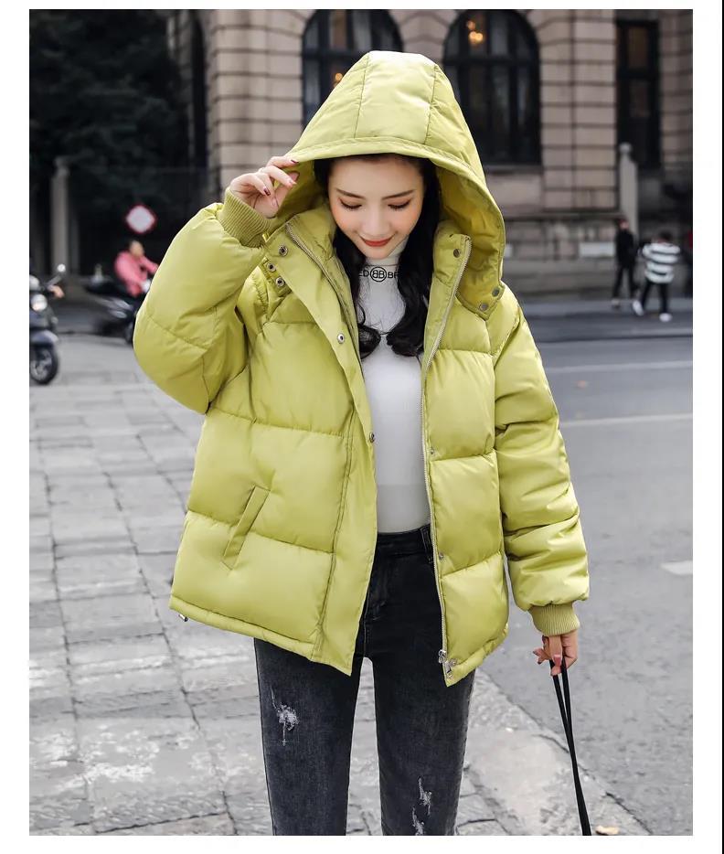 Зимняя женская милая куртка с капюшоном на хлопковой подкладке, женское короткое однотонное пальто с хлебом, студенческая куртка на хлопковой подкладке