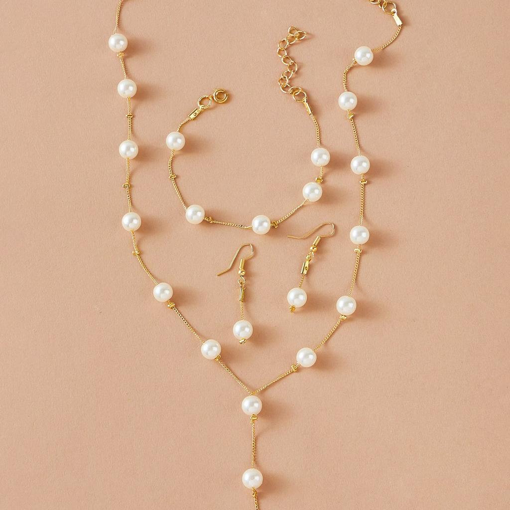 Мода сладкий элегантный жемчуг простой темперамент ожерелье серьги браслет набор