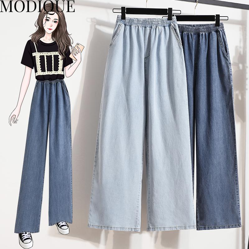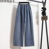 Modique женские повседневные джинсовые брюки больших размеров, новые свободные повседневные однотонные джинсовые длинные брюки трапециевидной формы, женские милые черные брюки с высокой талией
