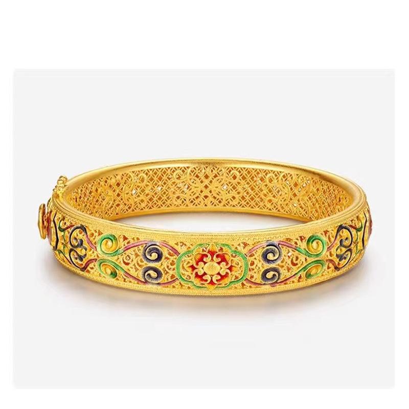 Золотой цвет Дракон и Феникс Благоприятный браслет с эмалью Открытый браслет в женском стиле