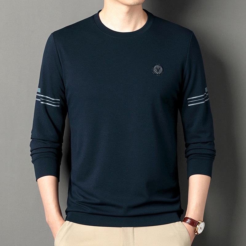 Футболка с длинными рукавами, мужская, весна-осень, новый топ с круглым вырезом, повседневная, универсальная, модная, простая, мужская толстовка, нижняя рубашка