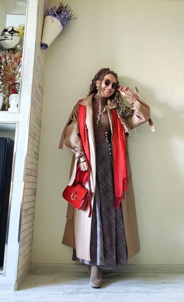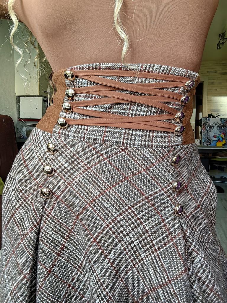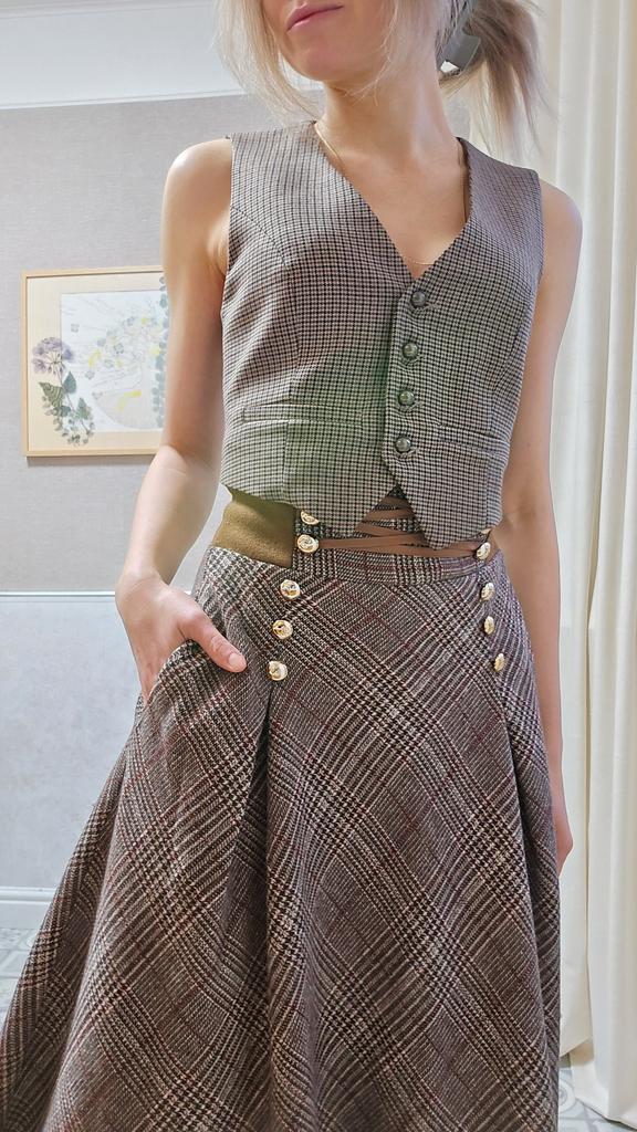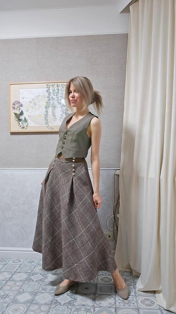 ШИКАРНАЯ ТЕПЛАЯ ЮБКА 🔥 В ретро-стиле. Привет 👋 Ой, девочки, юбка ШИКАРНАЯ. Она качественная, теплая, с подъюбником и дизайн очень интересный. Итак, не зря в описании есть упоминание про плед, юбка и правда теплая, как любимый плед. В составе однозначного есть шерсть, я в это верю, хоть она и не колючая. Ткань добротная, толстая, тяжёлая., не тянется. Такая клетка никогда не выйдет из моды. Снизу есть подъюбник. Он короче. Гладкий полиэстер. Не блестит. Юбка с очень высокой посадкой в ретро-стиле. Очень красиво оформляет талию. Вообще зона талии достаточно широкая и оформлена со стилизацией под корсет. Для этого по бокам пришиты вставки из ткани, напоминающей визуально замшу. Спереди идёт шнуровка корсетная, она декоративная, украшена крупными золотыми пуговками по бокам. Они словно винтажные, на них выбиты цветочки. Сбоку юбки вшита потайная молния в цвет. Работает отлично. По спинке идёт широкая резинка и она закрывается опять же шнуровкой, но здесь она уже функциональная, как в корсетах. Этот шнурок идёт в комплекте, вы его продеваете сами и регулируете под свои параметры. Внимание 3 летаоям поражает - посмотрите на видео, какие красивые металлические навесы на этой шнуровке. Но, кстати, можно и вообще обойтись без этого шнурка сзади. По бокам бьёт есть карманы! Они глубокие и удобные. Юбка миди. Идёт на расклешение к низу. Спереди есть два глубоких защипа, они красиво драпируют юбку. Пошив фабричный, очень качественный. Расцветка одна. Размеры: S- XL. Я выбрала максимальный размер. Она, конечно, застегнулась, но это было не просто) К моему глубочайшему сожалению, она мне сильно мала. Поэтому для данного размера ваши параметры должны быть меньше моих минимум сантиметров на 6 примерно. Мой рост 173см Параметры: 98/89/110 Размер одежды 50 -52 Замеры в размере XL: 📏длина 101см 📏длина подъюбника 77см 📏ОТ 72- 82см 📏ОБ 130 Думаю, что максимум на 48 размер. Не на 50. В моем случае она и присборилась сзади, потому что маловата. Это печально, потому что такие юбки встречаются не часто. И материал, и пошив, и фасон, и дизайнерские решения - все выглядит дорого, стильно, благородно! Просто 10 из 10🔥 Рекомендую, девочки ✅ На холодный сезон - находка! Не зря пишут, что купили бы ее и дороже,она правда могла бы стоить в разы больше! #elena_likui #Alyaboomty #юбка_в_клетку #теплая_юбка_миди