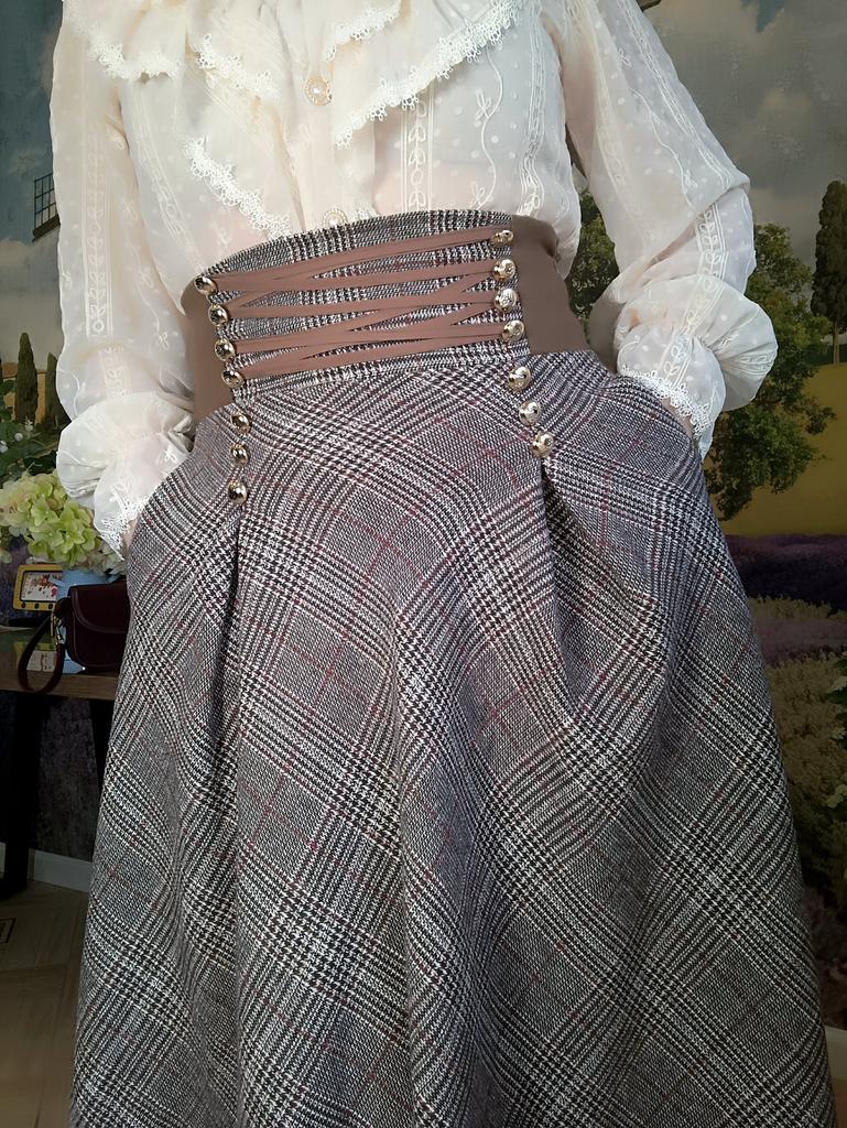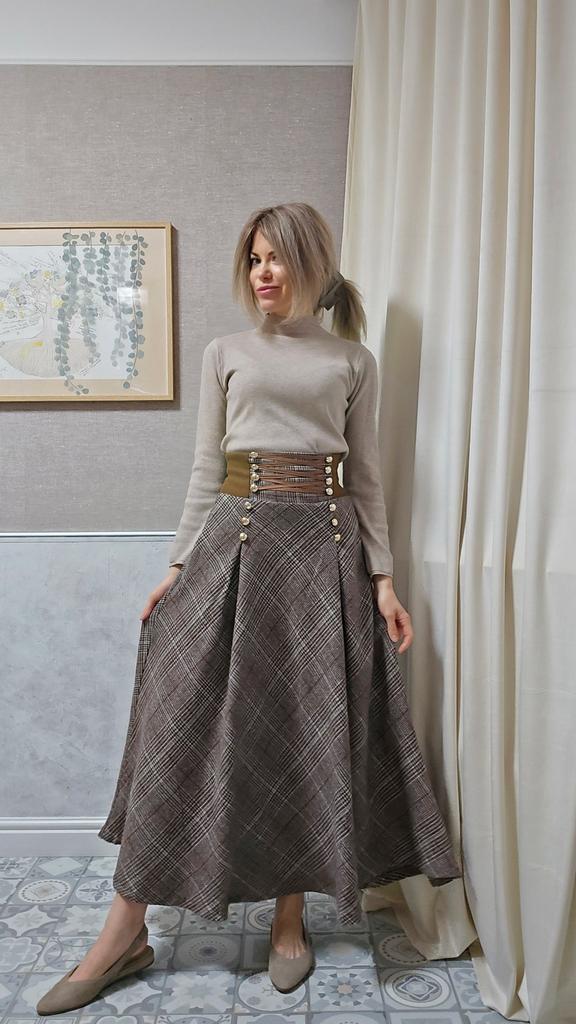 Осень-зима в английском стиле, женская длинная теплая юбка макси с высокой талией, бандажная плотная клетчатая шерстяная юбка, элегантная женская шерстяная юбка трапециевидной формы — купить товар онлайн с бесплатной доставкой по всему миру!