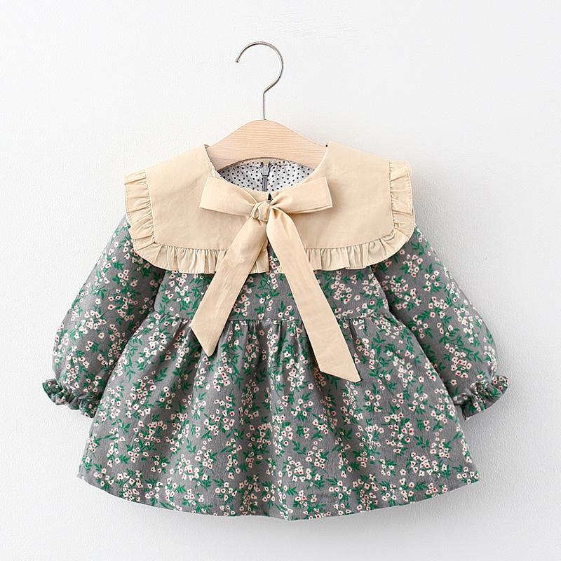 Детская одежда, новое осенне-зимнее платье с длинными рукавами для девочек, платье принцессы с цветочным узором для маленьких девочек, одежда для девочек