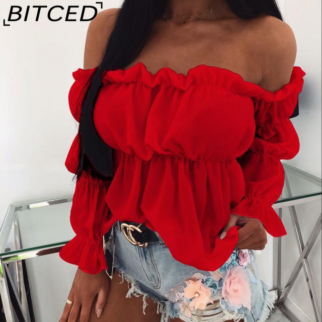 BITCED женская летняя однотонная блузка с одним вырезом и длинным рукавом с сексуальной талией и баской — купить товар онлайн с бесплатной доставкой по всему миру!