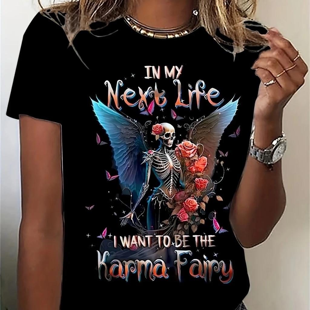 Женская футболка с принтом «Скелет и буквы» — повседневный топ с круглым вырезом и короткими рукавами для весны и лета