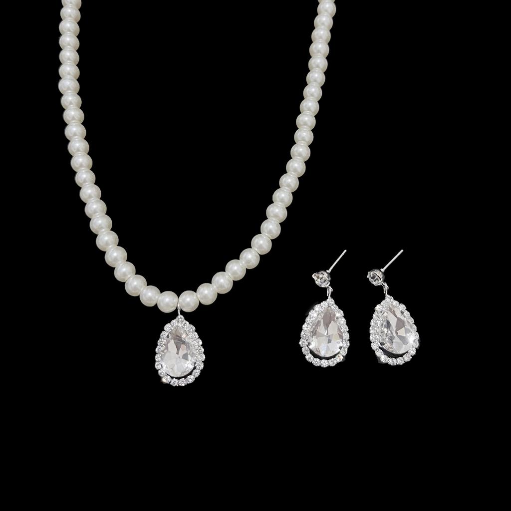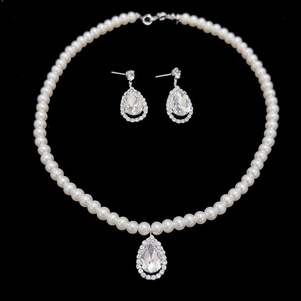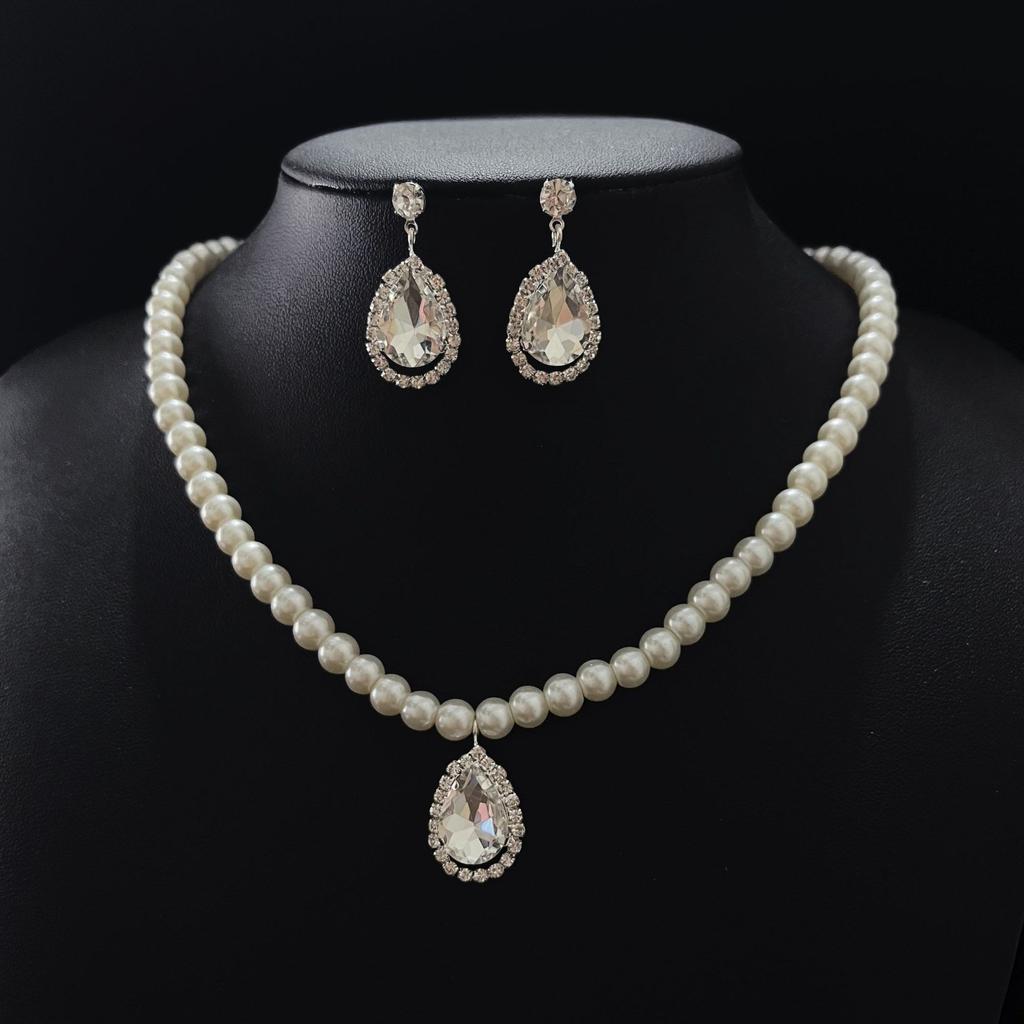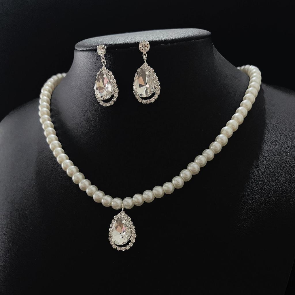 Универсальное ожерелье с жемчугом и драгоценными камнями, женские серьги с каплями воды, посеребренные серьги, комплект ювелирных изделий