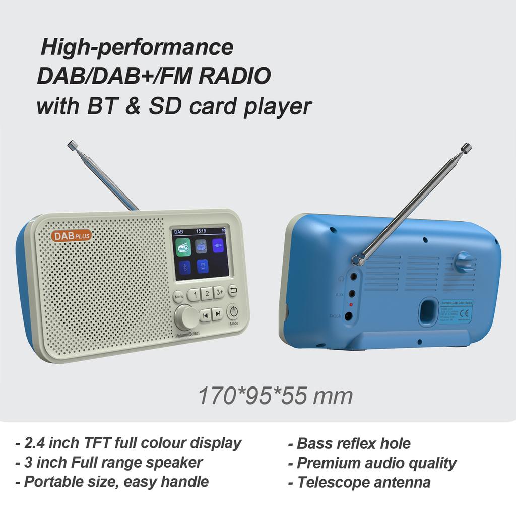 DABDAB+ и цифровое FM-радио: Где бы вы ни находились дома или на улице, наслаждайтесь DABDAB+ и FM-радио с хорошим качеством звука.. Со встроенным полным диапазоном 3-дюймовых мощных 5 Вт