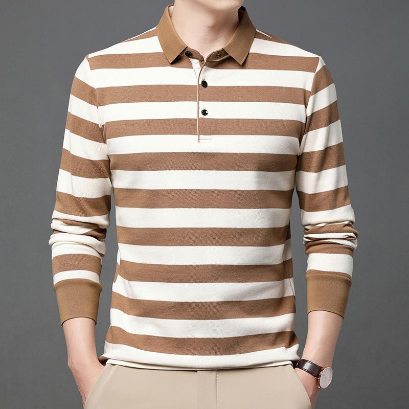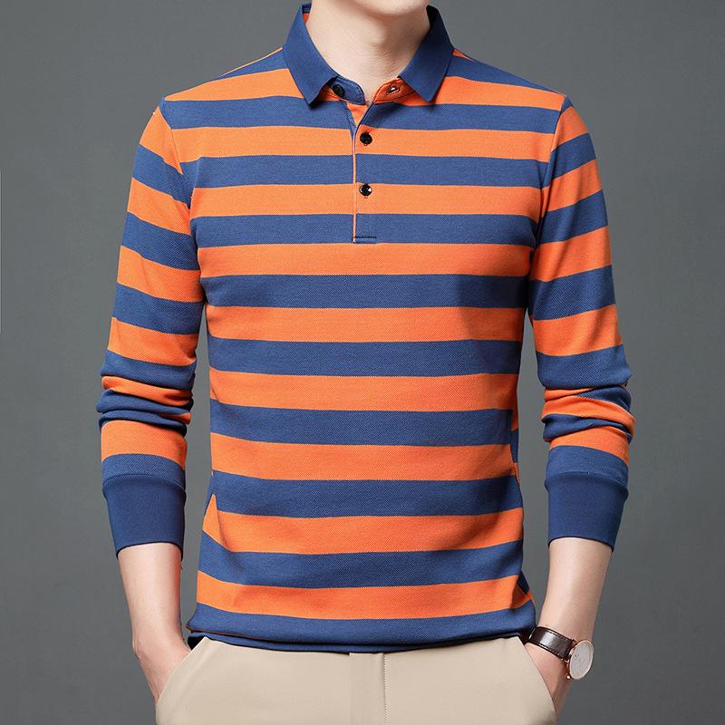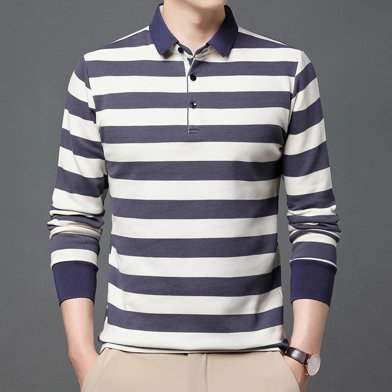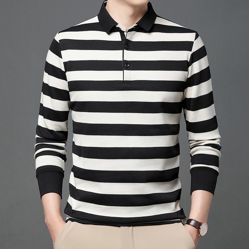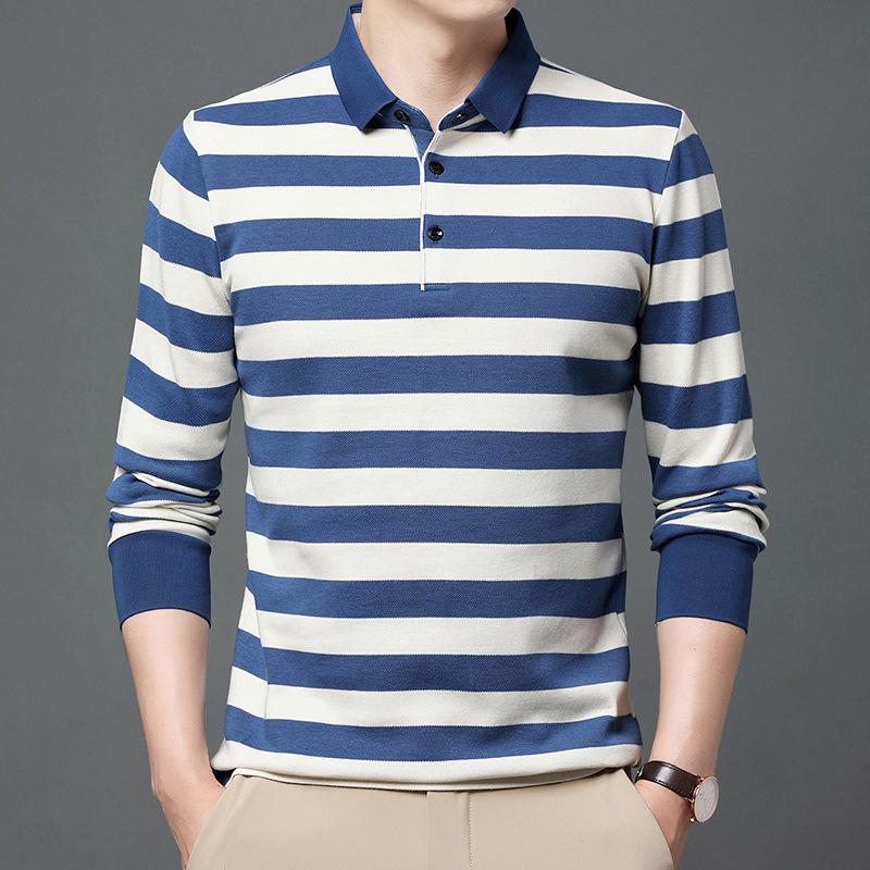 Полосатая футболка осень и зима новые длинные рукава нижние рубашки для молодежи и среднего возраста деловые повседневные рубашки поло мужские топы