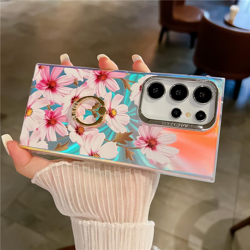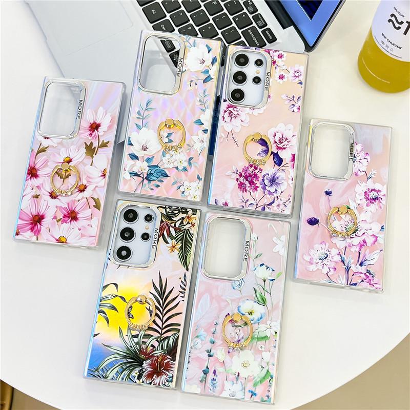 Чехол-держатель для телефона с бриллиантовым кольцом для Samsung A25 A54 A55 A15 A35 A14 A34 S24 Plus S22 Ultra S23 FE, блестящий чехол с цветочным листом