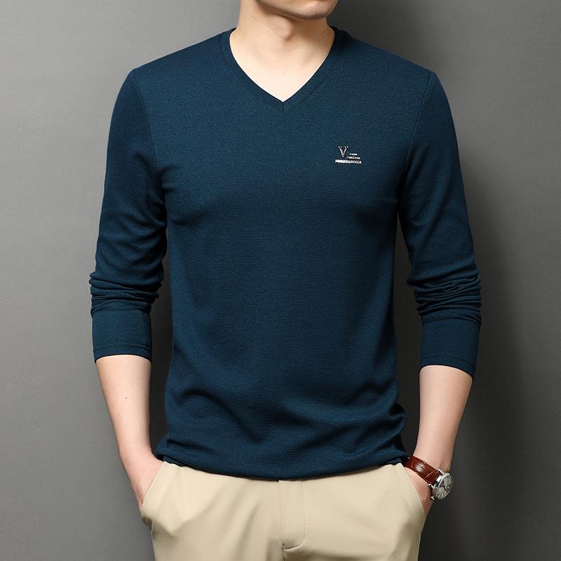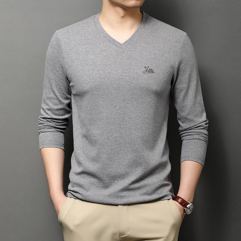 Весенняя новинка, хлопковая футболка с V-образным вырезом и длинными рукавами, мужская модная повседневная свободная мужская рубашка в корейском стиле