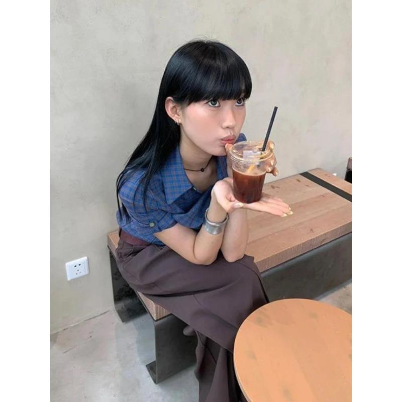 Y2k Эстетические винтажные рубашки в клетку в стиле Харадзюку, летние однобортные женские повседневные блузки, японская тонкая уличная одежда Blusas De Mujer