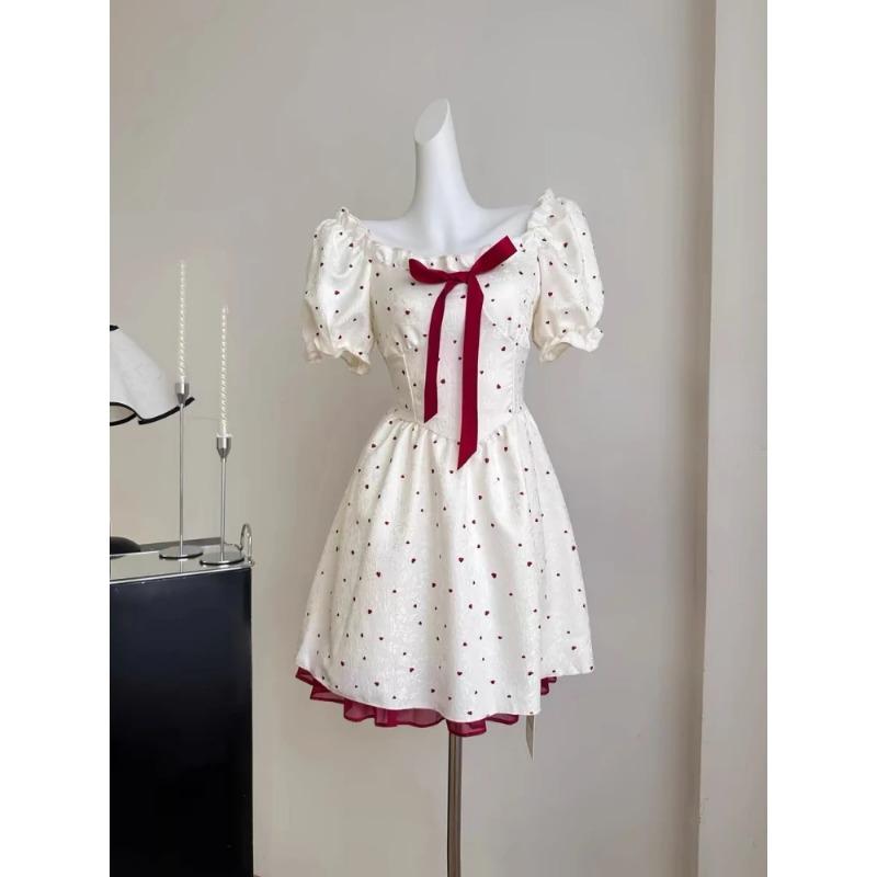 Новое летнее милое мини-платье с французским квадратным воротником, платье принцессы с короткими рукавами и бантом, женские элегантные вечерние винтажные платья, Vestidos