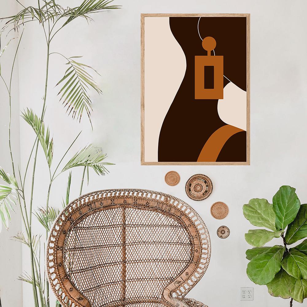 Современное искусство Картина на холсте Африканская черная женщина Постеры и принты Солнце Луна Растение Бохо Настенные картины Гостиная Домашний декор