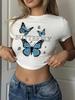 Винтажная сказка, гранж, принт бабочки, короткий рукав с круглым вырезом, приталенный укороченный топ, футболка в стиле Харадзюку в стиле панк