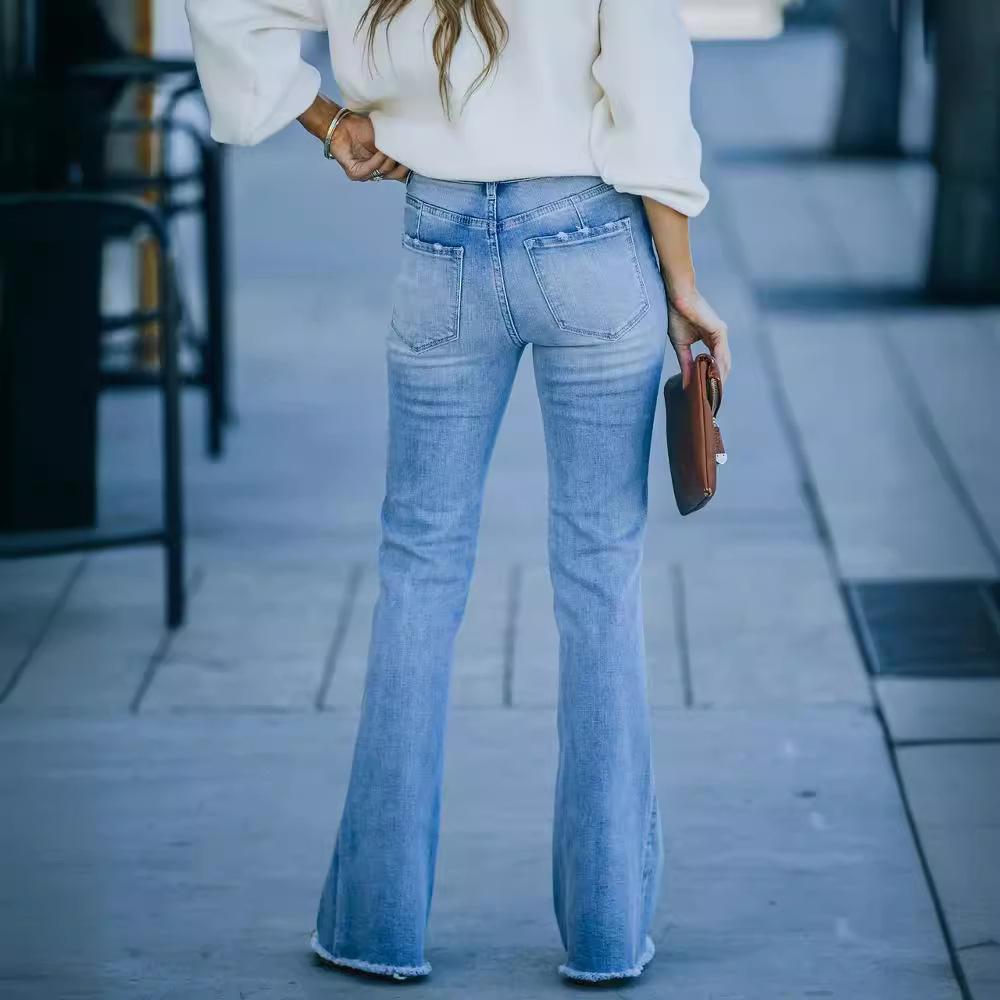 Новые темпераментные пригородные эластичные джинсовые однотонные микро-брюки женские джинсы с высокой талией