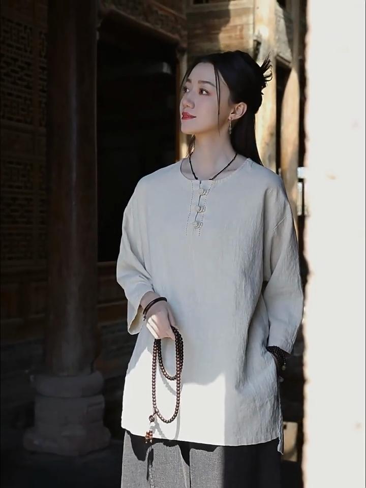 Johnature женские винтажные футболки в китайском стиле с круглым вырезом и семью рукавами, однотонные свободные футболки на весенних пуговицах — купить товар онлайн с бесплатной доставкой по всему миру!