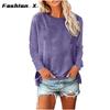 Женский свободный пуловер с круглым вырезом, однотонная женская футболка с длинными рукавами, топ