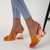 Летние новые прозрачные туфли-шлепанцы на фигурном каблуке конфетных цветов для женщин, большие размеры 35-41, сексуальная свадебная обувь, роскошная женская обувь