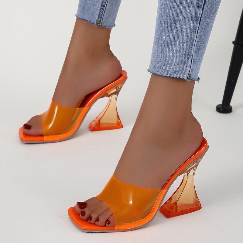 Летние новые прозрачные туфли-шлепанцы на фигурном каблуке конфетных цветов для женщин, большие размеры 35-41, сексуальная свадебная обувь, роскошная женская обувь — купить товар онлайн с бесплатной доставкой по всему миру!
