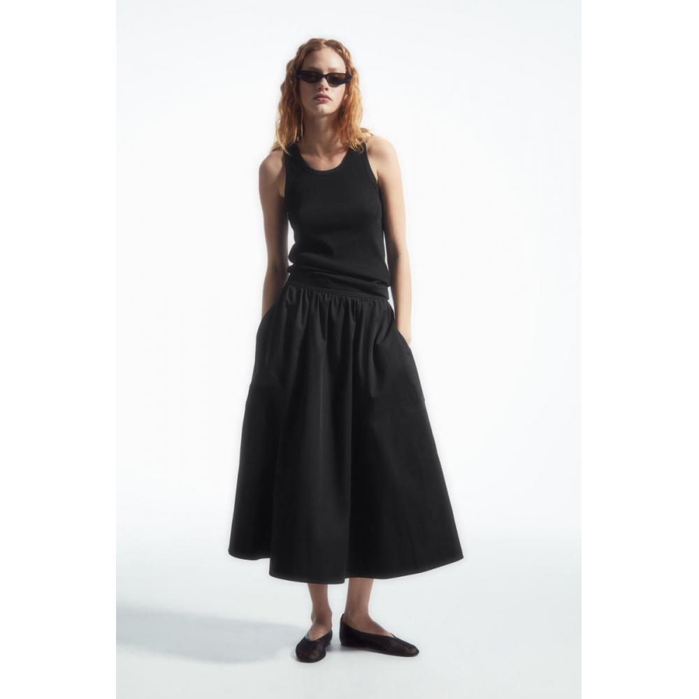 Юбка миди изготовлена из хлопка классического оттенка.. Имеет эластичный пояс, подол средней длины и боковые карманы.. Для создания образа сочетайте его с майкой и балетками.