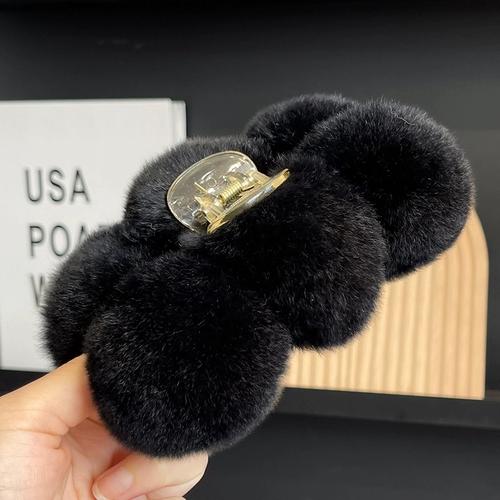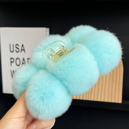 Заколка для волос с шариком из меха кролика рекс, осень и зима, плюшевая ручка, большая заколка в виде акулы, заколка для волос, корейский головной убор для волос