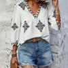 Женский модный повседневный топ с v-образным вырезом и семью рукавами с принтом