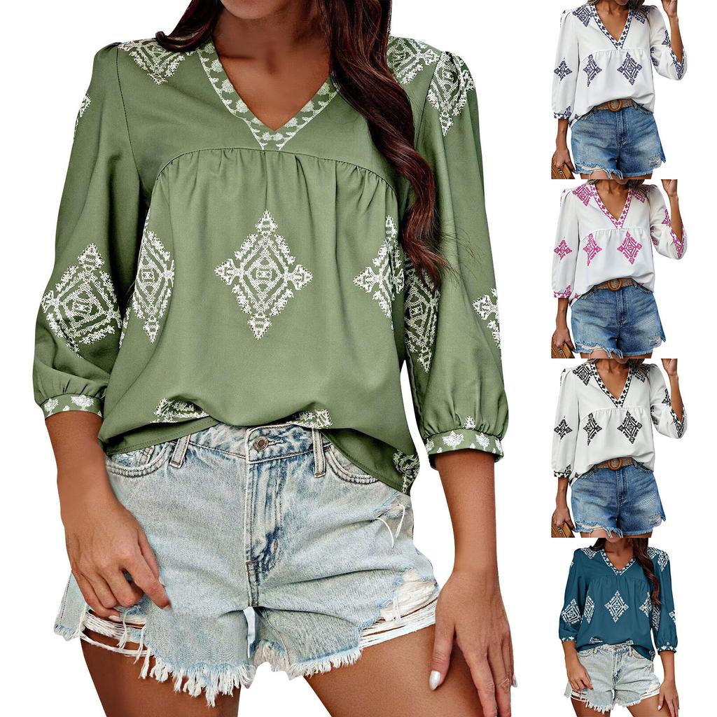 Женский модный повседневный топ с v-образным вырезом и семью рукавами с принтом — купить товар онлайн с бесплатной доставкой по всему миру!
