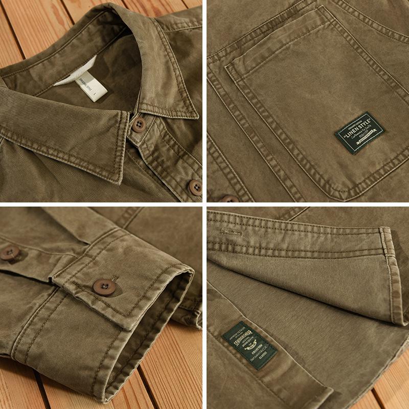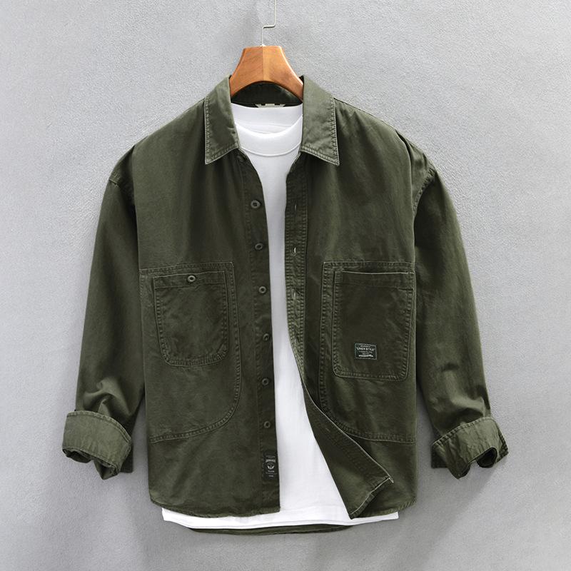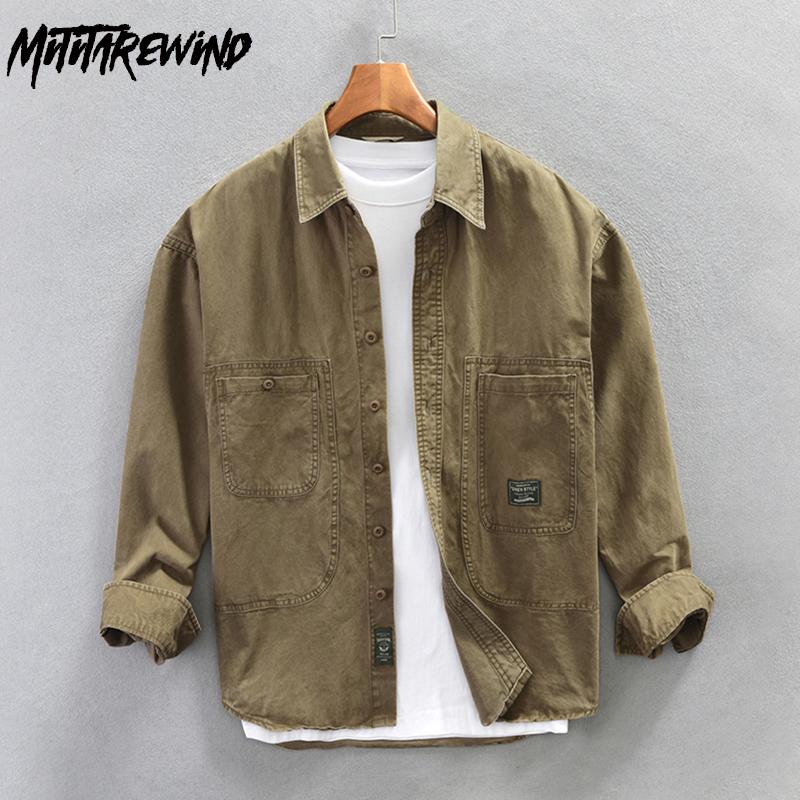 Весенние и осенние рубашки-карго с длинным рукавом для мужчин в японском стиле, мужские топы с карманами, повседневная рубашка из чистого хлопка 4XLМодная свободная рубашка высокого качества