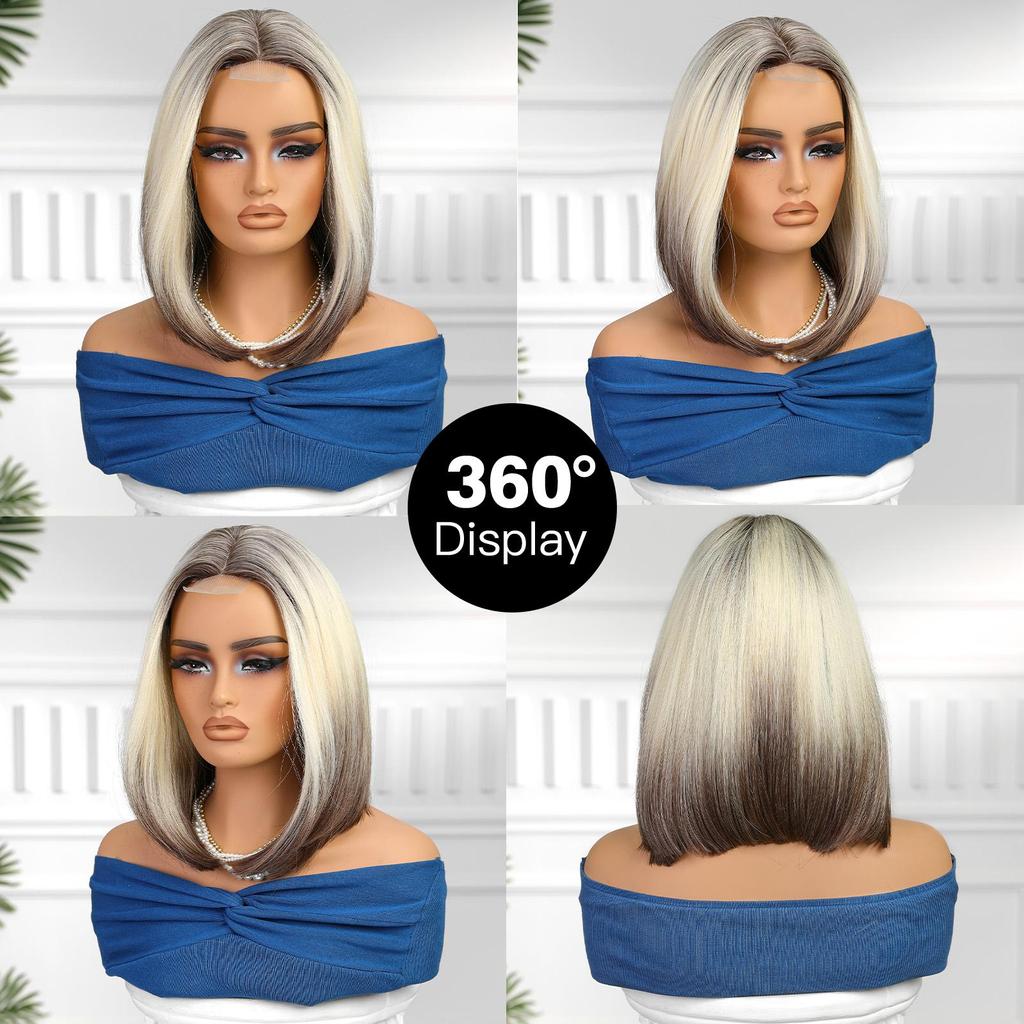 LOUIS FERRE 1*4 кружевные синтетические парики короткий боб с омбре топ от темно-черного до смешанного коричневого парик волосы для девочек на каждый день для вечеринок термостойкие на каждый день