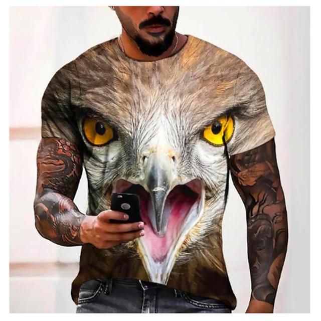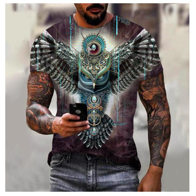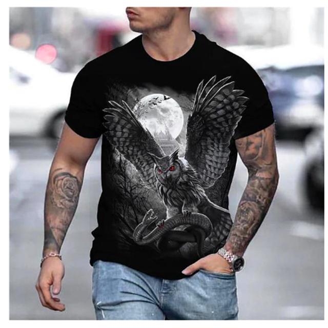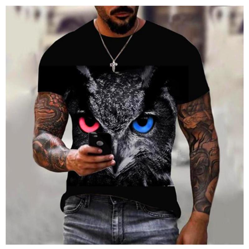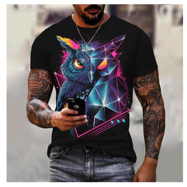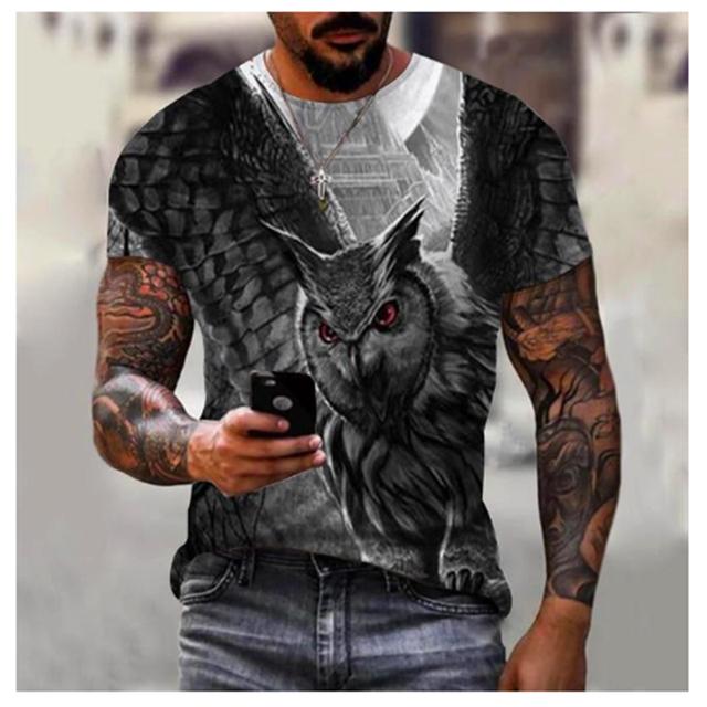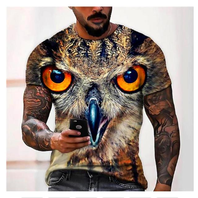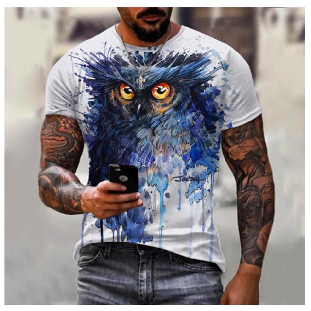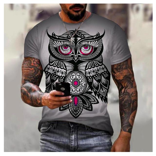 Летние мужские футболки с 3D-принтом в виде совы, уличные топы в стиле Харадзюку, свободные футболки с круглым вырезом и коротким рукавом, футболки больших размеров для мужчин
