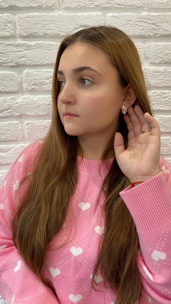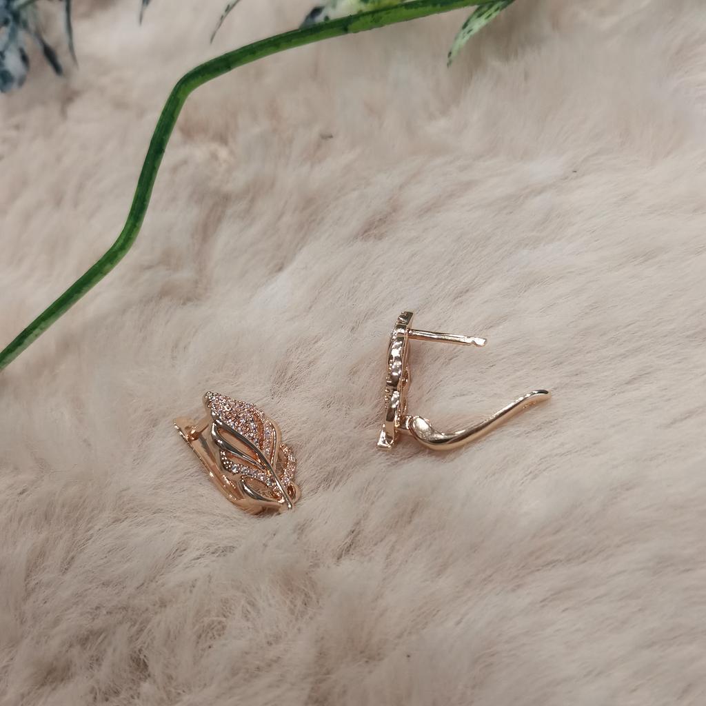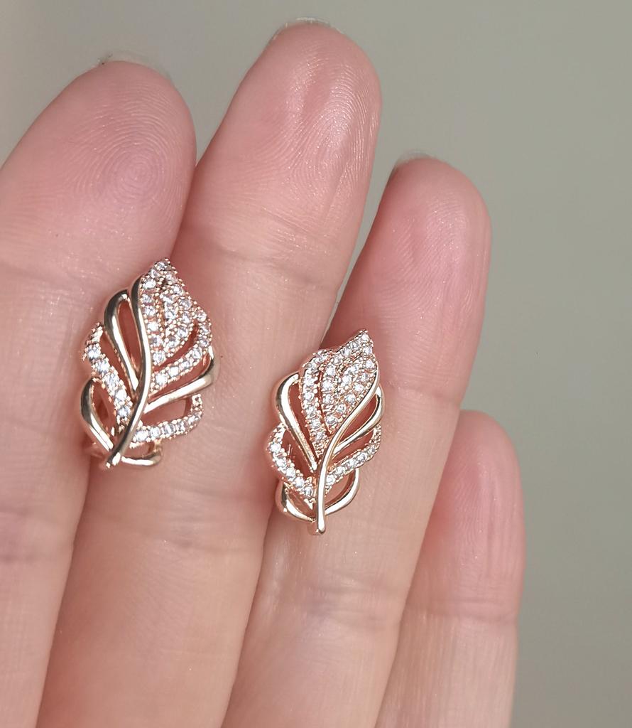 🌺Серьги-листики 🌺Размер 1,1* 1,9. 🌺Выполнены из сплава меди. 🌺Есть три варианта расцветки.Хотите что бы под золото, берите именно золотой. У меня розово-золотые, не много отличается. 🌺Серьги украшены мелкими цирконами, красиво переливаются на свету или солнышке. 🌺Замок английский, работает отлично. 🌺Качество серьг отличное, всё аккуратно и красиво👍😘😘😘