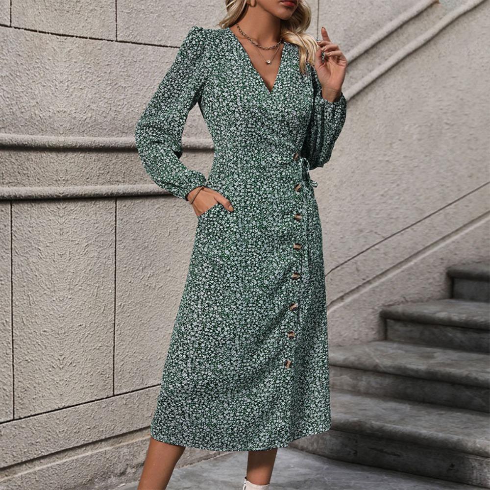 Осеннее женское платье с длинным рукавом и цветочным принтом