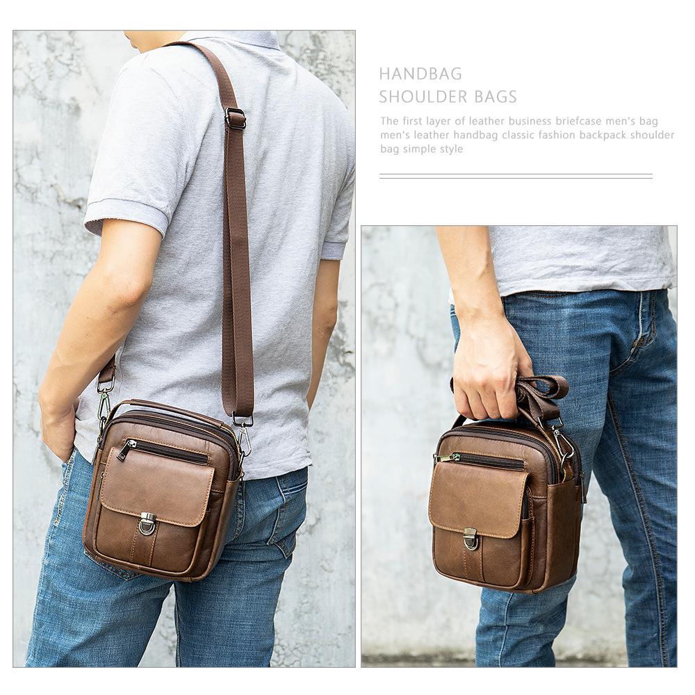 Мужская кожаная сумка через плечо в стиле ретро с верхним слоем из воловьей кожи, мужская повседневная маленькая сумка через плечо