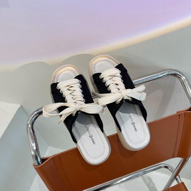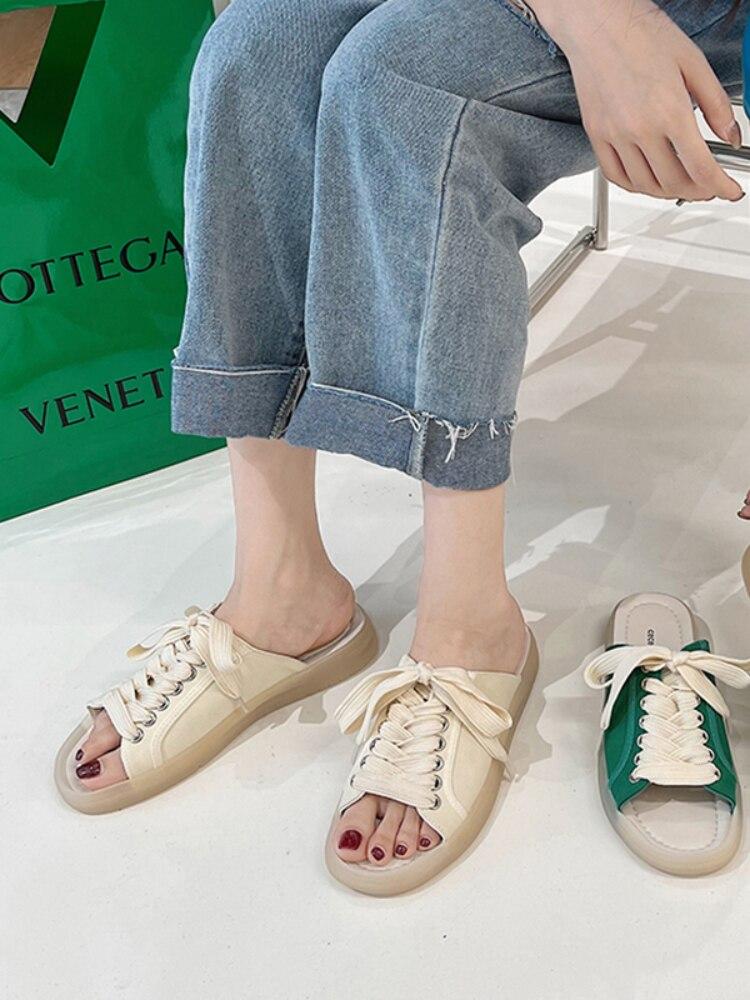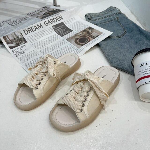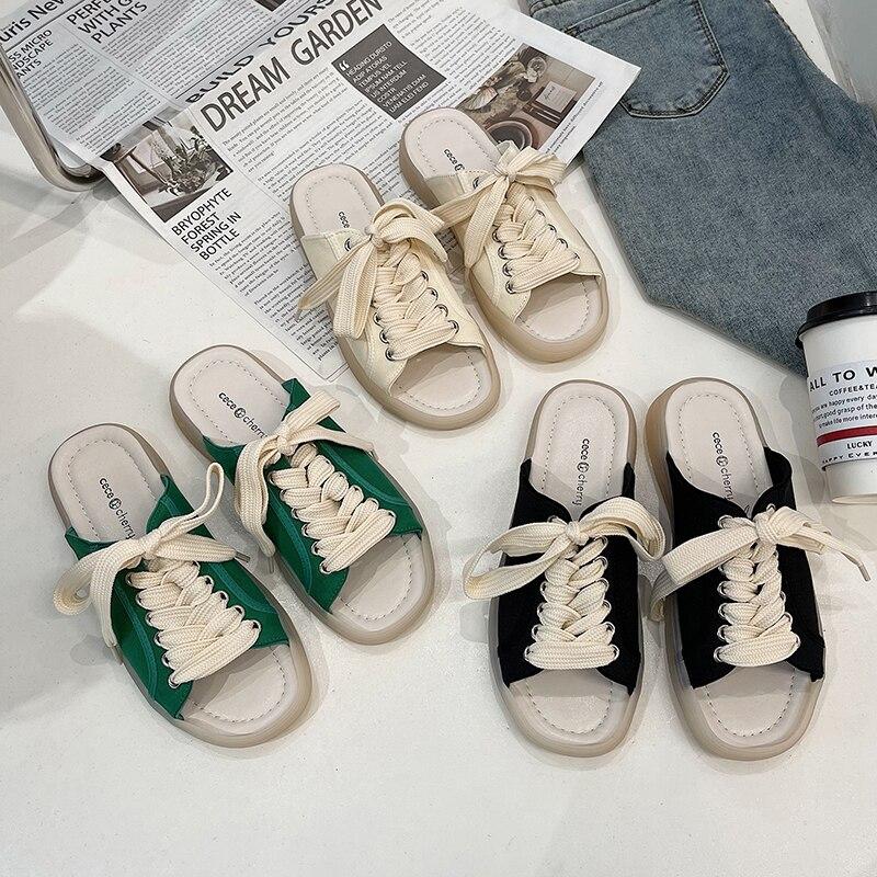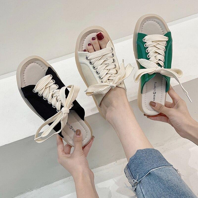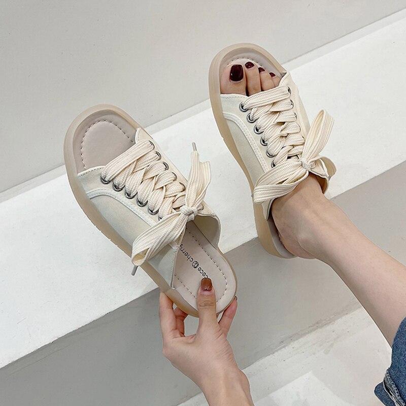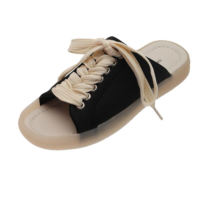Новые модные женские летние повседневные парусиновые сандалии на шнуровке, модные спортивные тапочки на плоской подошве, сандалии на плоской подошве с открытым носком