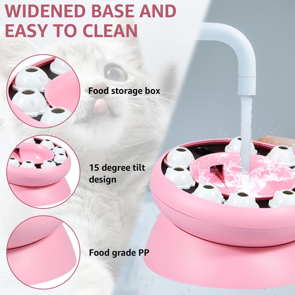 [Дизайн с наклоном на 15 градусов] Медленная кормушка для кошек спроектирована с наклоном на 15 градусов, что позволяет вашей кошке есть более естественно и комфортно, а также снижает нагрузку на суставы и желудок вашего питомца, помогая улучшить пищеварение.. Подходит для кошек разного возраста и размера.