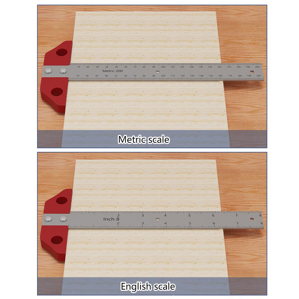 8 дюймов/200 мм линейка Т-образная квадратная линейка, металлический столярный инструмент для деревообработки, дюймовая метрическая двухсторонняя шкала, измерительная линейка